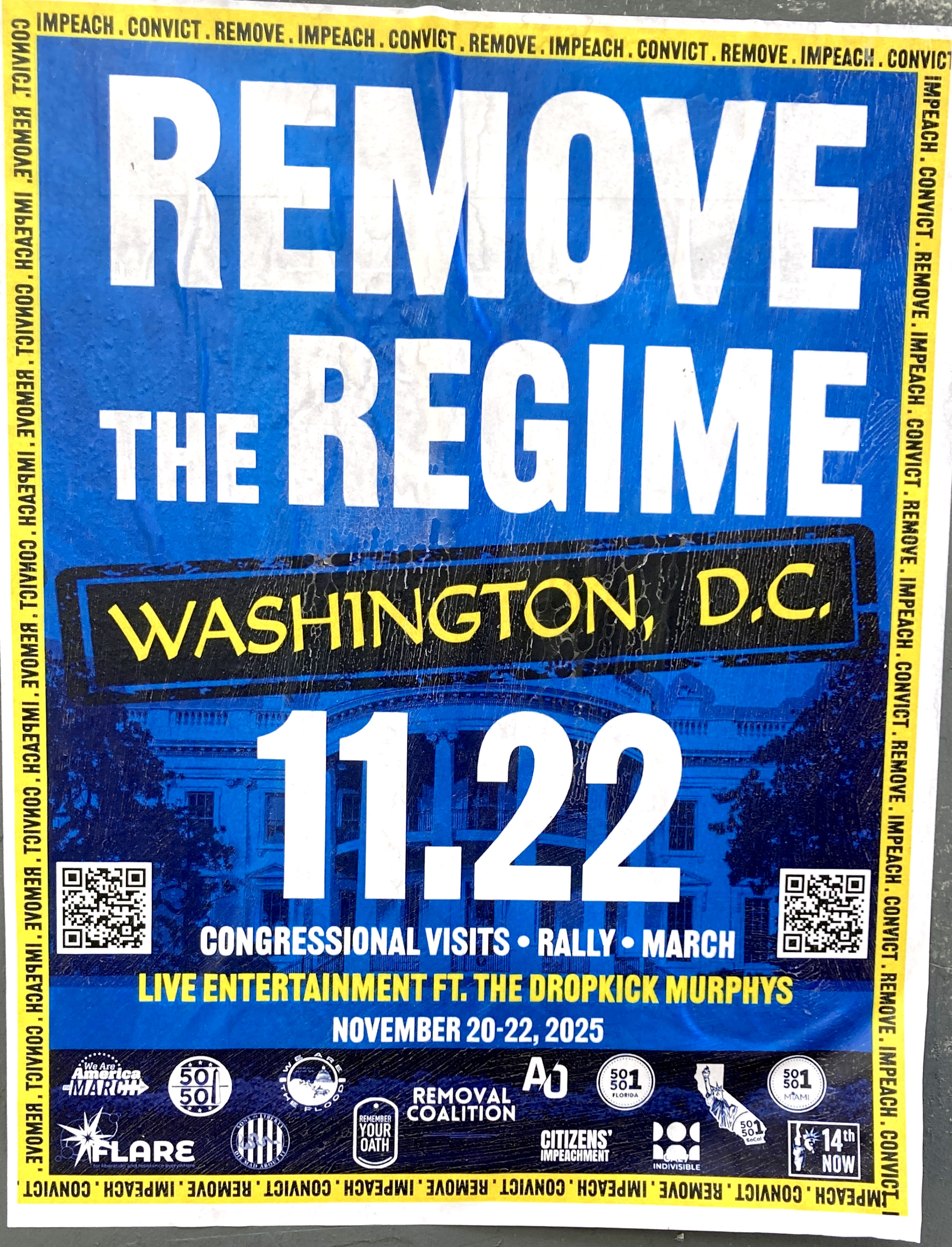 We’ve just barely had time to hose down our street from that rank-assed “No Kings” shitfest before we get the news that these assholes are rolling into town on the 22nd of November — a quite apropos date for this shindig as I’ve often found myself wishing for a cheap Italian rifle and a school book depository lately.
